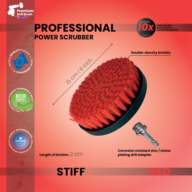 Profesionalus Drill Brush šepetys įvairiems valymo darbams atlikti. Puikiai tiks kilimų, baldų, odinių paviršių, automobilių sėdynių ar stiklo valymui. Šeriai pagaminti iš auktos kokybės neilono ir yra itin minkšti tarsi dantų šepetėlio šereliai.