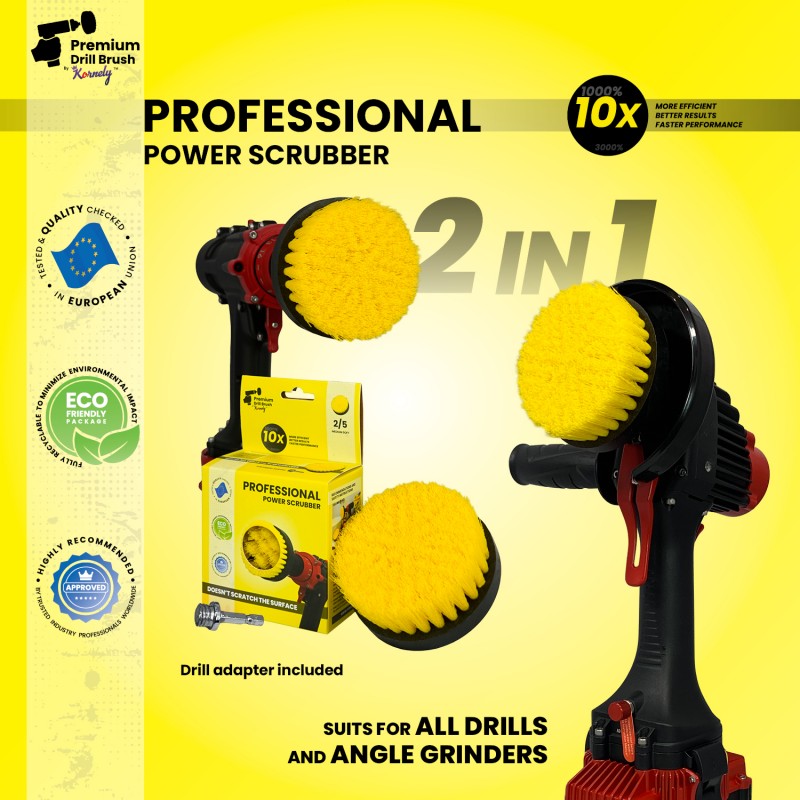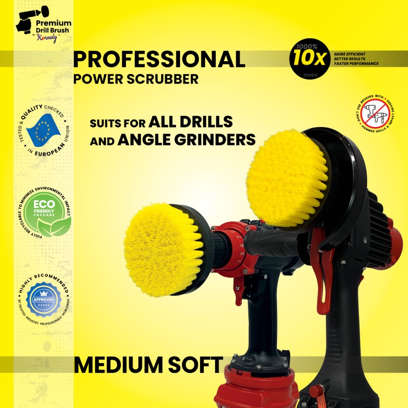 Premium Drill Brush For Professional Cleaning 2 in 1 - Medium Soft, Yellow, 10 cm