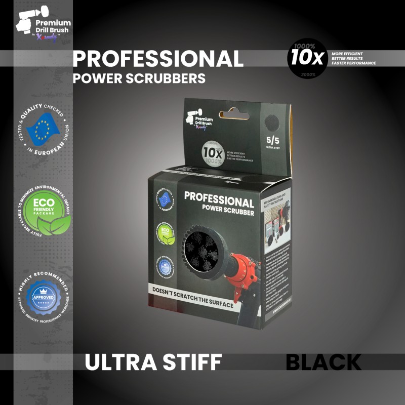 Premium Drill Brush For Professional Cleaning 2 in 1 - Ultra Stiff, Black, 10 cm