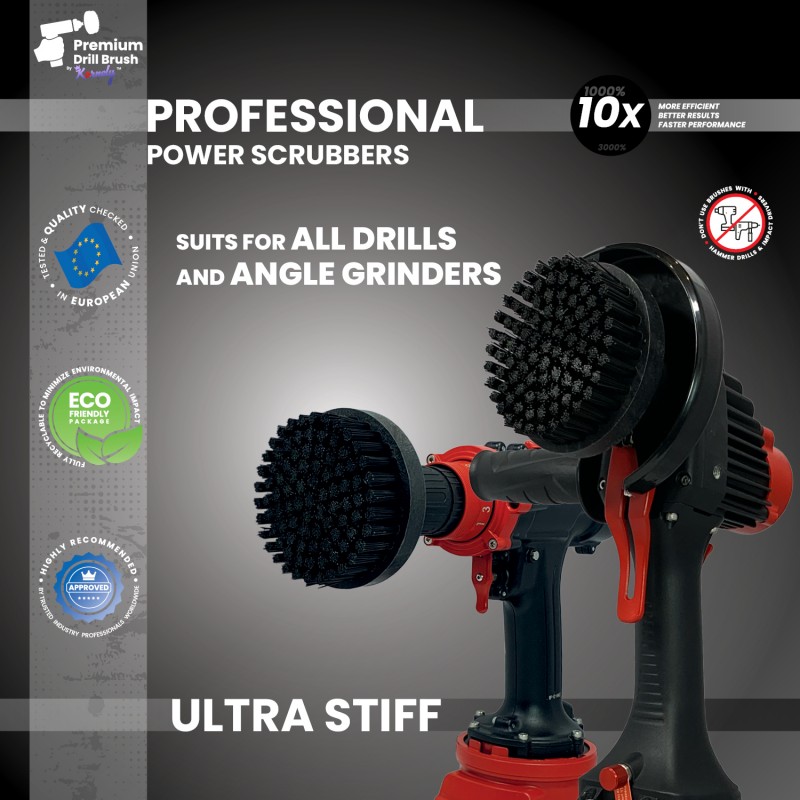Kornely Premium Drill Brush Professional ir īpaši izveidots, lai ātri un izcili izpildītu dažādus tīrīšanas pienākumus. Augstākās kvalitātes urbju birstes ir lieliski piemērotas tīrīšanas darbiem iekšpusē un ārpusē, ieskaitot lieljaudas darbus. Birstes nesaskrāpē virsmu un neietekmē krāsu.