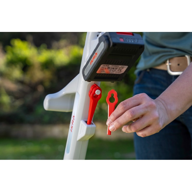 129,00 € Taupīt:30,00 € Garantija: 24 mėn.IKRA IART 2025 ir praktisks 2in1 akumulatora trimmeris, kas paredzēts glītām zāliena apmalēm un vietām, kur zāles pļāvējs netiek klāt. Komplektā ir divi griešanas risinājumi: spole ar auklu precīzai apmalu un zāles piegriešanai, un neilona asmeņi, kas ļauj vieglāk tikt galā ar stingrākiem augiem un blīvāku zāli. Ērtībai trimmerim ir 180° pagriežama galva vertikālai apmalei, teleskopiska augstuma regulēšana, automātiska auklas padeve, nolokāms augu aizsargs un integrēta asmeņu uzglabāšanas vieta.
