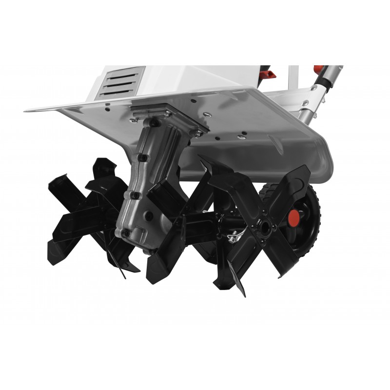 Гарантия: 24 mėn.IKRA IEM 1500 — мощный электрический культиватор (фрезер) для рыхления и подготовки почвы. Доступны две рабочие ширины (45 см или 32 см) благодаря съёмным внешним ножам — удобно и для больших участков, и для узких грядок. Двигатель 1500 Вт и прочный необслуживаемый червячный редуктор в масляной ванне обеспечивают стабильную работу, а защита от перегрузки повышает безопасность. Для удобства предусмотрены эргономичная рукоятка с мягкими накладками, регулируемый по высоте сошник (упор), транспортировочное колесо, фиксация кабеля (снятие натяжения), а также предохранительный выключатель с блокировкой включения. Электрический безопасный тормоз даёт дополнительный контроль.